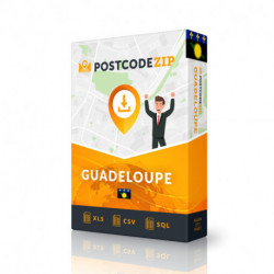 Šiame produkte yra visas pašto kodų/miestų sąrašas Gvadelupoje. Faile yra 33 pašto kodai, 33 miestai visoje šalyje.Failo pavyzdį rasite paspaudę čia