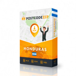 Šiame produkte yra visas pašto kodų/miestų sąrašas Hondūre. Faile yra 0 pašto kodai, 70 miestai visoje šalyje.Failo pavyzdį rasite paspaudę čia