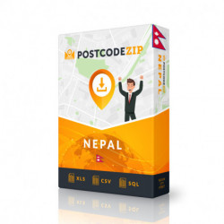 Šiame produkte yra visas pašto kodų/miestų sąrašas Nepale. Faile yra 0 pašto kodai, 233 miestai visoje šalyje.Failo pavyzdį rasite paspaudę čia