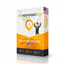 Šiame produkte yra visas pašto kodų/miestų sąrašas Jungtinese Amerikos Valstijose. Faile yra 34 785 pašto kodai, 39 408 miestai visoje šalyje.Failo pavyzdį rasite paspaudę čia